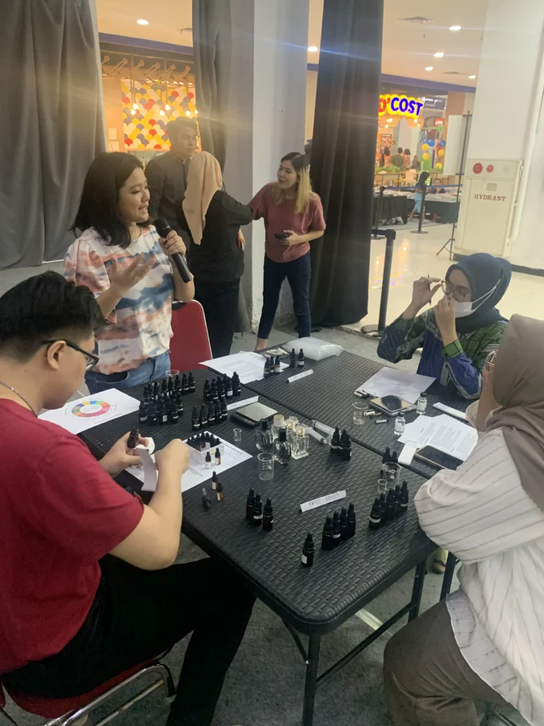 Pada workshop ini, peserta belajar mengenai hal-hal esensial dari dunia perparfuman, seperti: