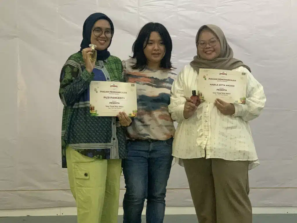 Setelah acara selesai, peserta akan mendapatkan custom perfume 30 ml buatan sendiri dan sertifikat juga.